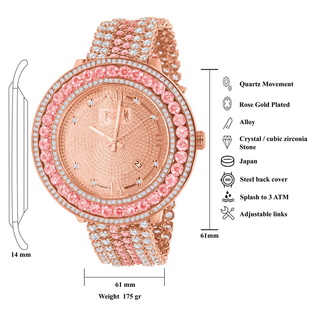 18k Rose Gold Genuine Diamond Dial Roman Face Pink Solitaire Etsy